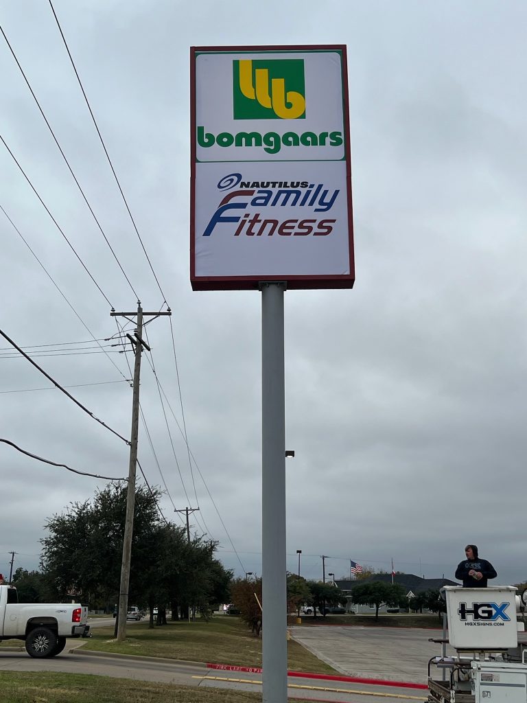 This commercial sign install was for the Sherman location. HGX also installed the signs on the building and the pole sign face retrofit for other locations such as Ardmore, Duncan, and Durant.
