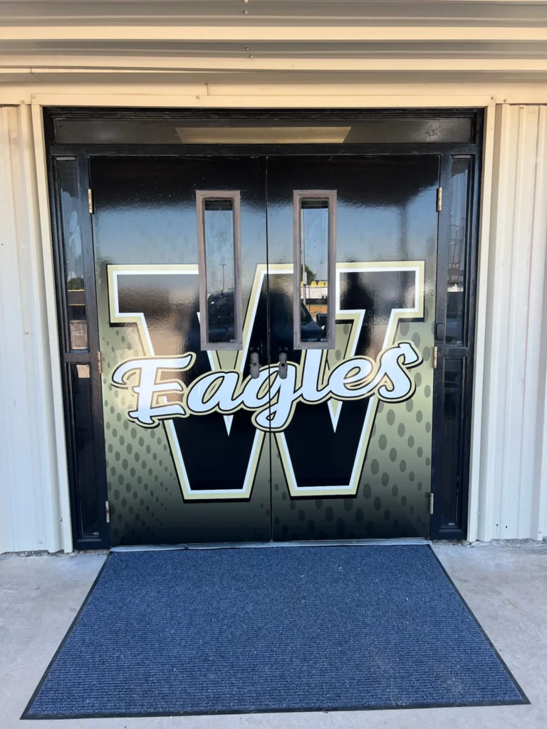 At Hunter Graphix, we believe school spirit should be seen and felt—and that’s exactly what we delivered at Wilson High School. These custom door wraps, emblazoned with the powerful slogan “Black & Gold Forever,” bring bold visual impact to every entrance.
